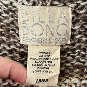 Billabong open sweater 3/4 sleeves gray with tan gold stripe size Medium