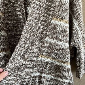 Billabong striped open sweater 3/4 sleeves gray with tan and gold stripes size M