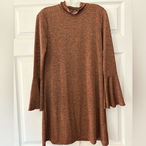 Billabong rust brown, black stripes, bell sleeve mini dress size small NWT