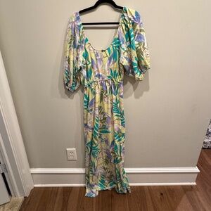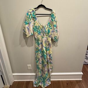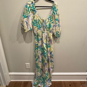 This is a beautiful floral dress by billabong. It is a women's L and is like new. it is a summer dress made is the perfect summer dress.