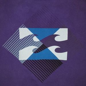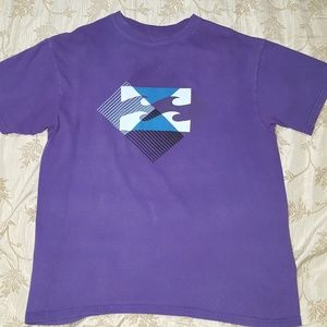 Billabong surfer wave logo graphics t-shirt in purple with teal and white.