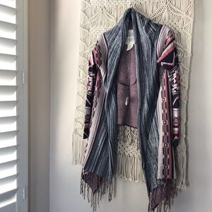 Billabong tribal print open fridge boho cardigan blue & pink sweater siz…