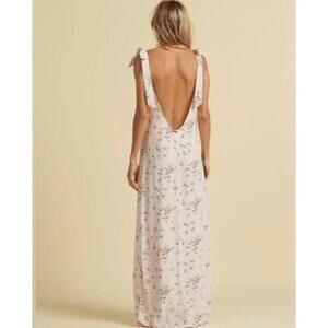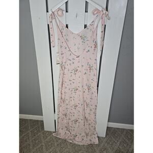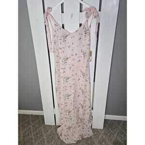 New with Small Defect, Billabong x The Salty Blonde Beaxh Party Maxi Dress, Adjustable Straps, VNeck with Plunge Back, Side Slit, Pink Floral, Medium