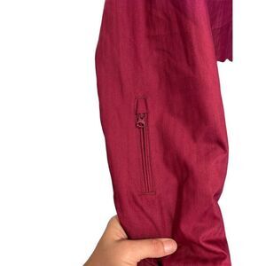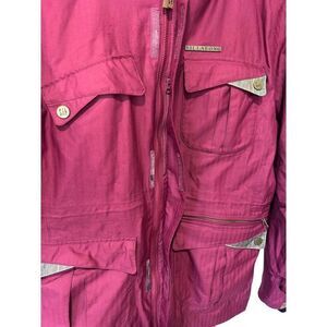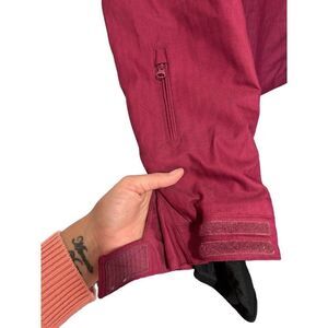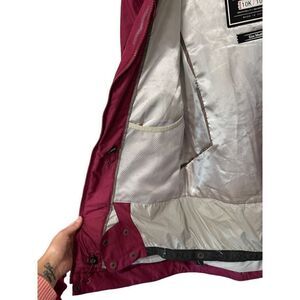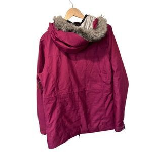 Breathable air pockets near arm pits to prevent overheating during activity! Such a high quality piece for hte sport. Pretty reddish color and faux fur hood to keep you warm! Waterproof Weatherproof.
