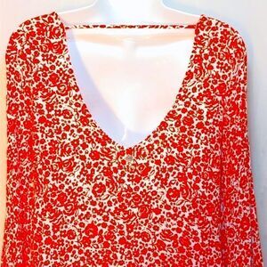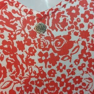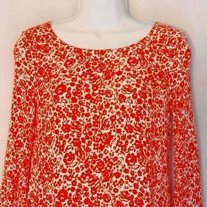 Billabong Floral Mini Orangeish Red & White Size XS/TP Tight Pleated Look Long Sleeve Elastic at Wrist