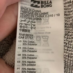 Billabong gray and white striped hoodie. Armpit-to-armpit 27”, sleeve 19” and length 23”.