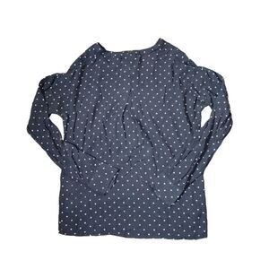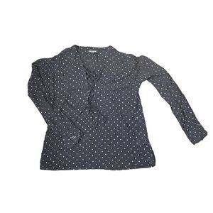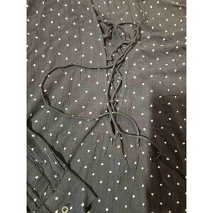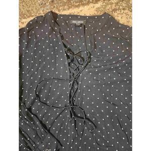 Long Sleeve Polka dot Black and white Tie Front Flowy 100% rayon No visible flaws Measurements are approximate Bust 21" Length 24"