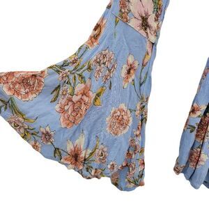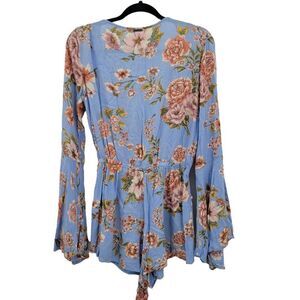 Billabong Romper Boho Festival Large Bell Sleeve Plunging Tie Waist Floral Sz M