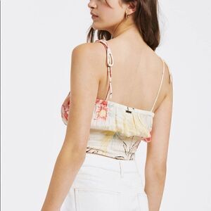 A sweet cami, the Simply Put bats its lashes with a cropped length and thin straps at that tie at the shoulders. The woven, allover print tank top is finished with a smocked waist for a fitted shape at the bottom.