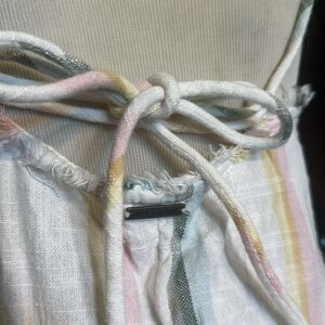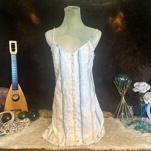 Beautiful summer dress. This ties in the back so you can adjust the length of the straps that way. This 100% cotton dress measures 16 inches pit to pit and is approximately 30 inches long.