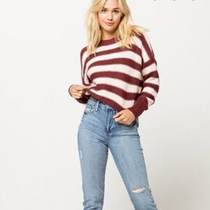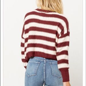 Very well made knit sweater with a loose fit 100% cotton burgundy and cream