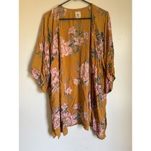 Billabong yellow floral open front cardigan kimono sz S/M women’s beachy boho f