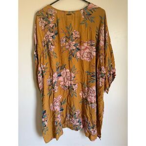 Billabong yellow floral open front cardigan kimono sz S/M women’s beachy boho festival