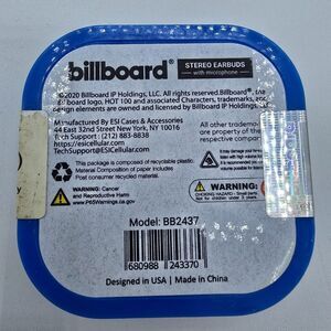 Experience high-quality sound with these Billboard Stereo Earbuds. The earbuds come in a stylish blue color and have a built-in microphone for convenient calling and voice commands. They are perfect for studio monitoring, DJing, and live monitoring, making them a versatile choice for any music professional.