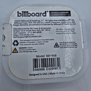 Billboard Stereo Earbuds with In-Line Mic Storage Case White