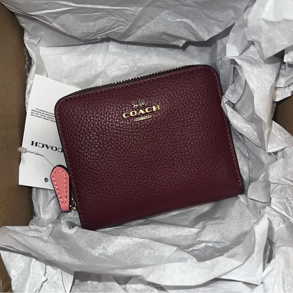 Polished pebble leather Eight credit card slots Full-length bill compartment Snap closure Outside zip coin pocket 4 1/4 (L) x 3 3/4 (H) x 1/2 (W) Style No. 719