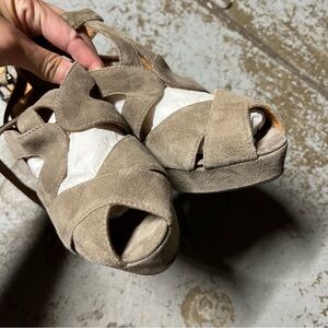 Billi Bi Beige Taupe Suede Strappy Open Toe Platform Heels Size 38 NWOT