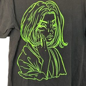 Billie Eilish Green Anime Sketch Boxy Black Music Tour T-Shirt 2021 Size L D548