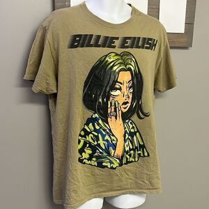 Billie Eilish Heather Taupe Band Soft Cotton T-Shirt- Large