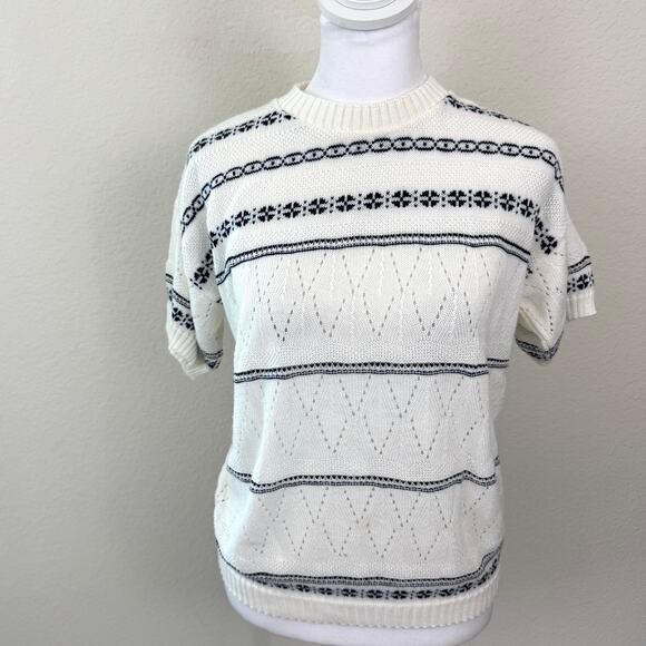 Billie Jo Womens Vintage Knit Sweater Measures S Pointelle Made In USA Blue