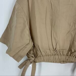 Billie the Label Imogene Crop Top Linen Blend Khaki Medium Collar Button Tencel