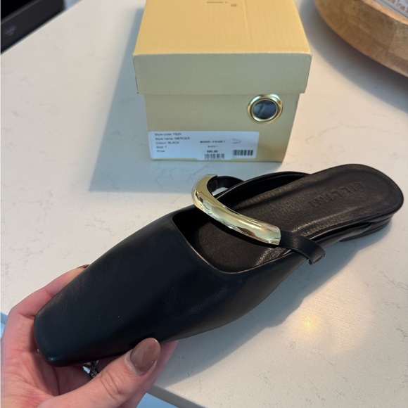 Chic black flats with a stylish gold accent. Perfect for versatile wear.