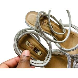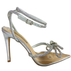 Billini Flope Womens Crystal Embellished Heels Silver Bow Pointed Sandals 8