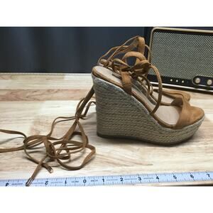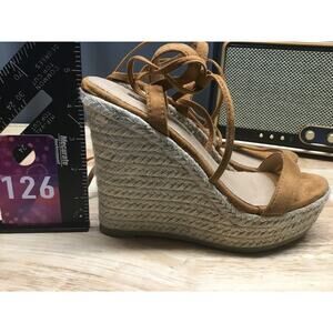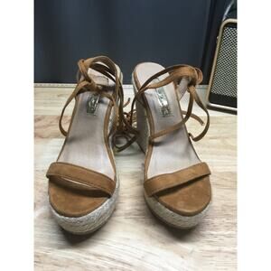 Billini Platform Sandals Women's 5 Tan Suede Strappy Wedge Heel Open Toe Casual