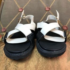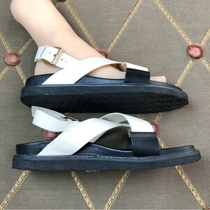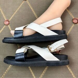 Billini Sandals Flat in Cream and Black with Ankle Strap (~7)