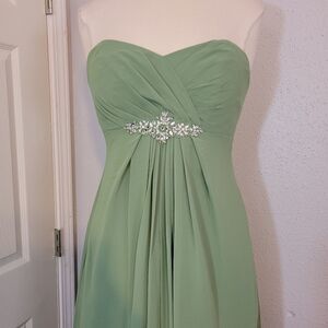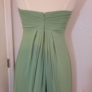 Beautiful pistachio color. Good condition. Has double layer lining and the inner layer is tugged at bottom, but cannot see it at all. Zips in back. No stretch.