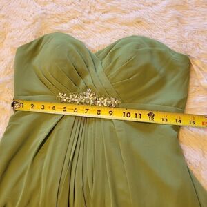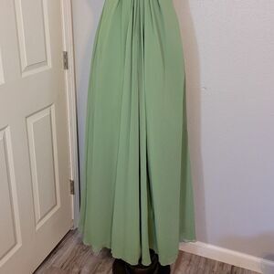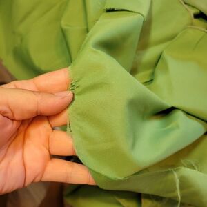 Beautiful pistachio color. Good condition. Has double layer lining and the inner layer is tugged at bottom, but cannot see it at all. Zips in back. No stretch.