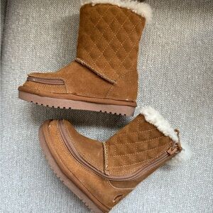 Never worn — my kiddo skipped a size! Stylish brown quilted suede boots with cozy shearling trim. Easy on zipper, perfect for littles to do on their own!
