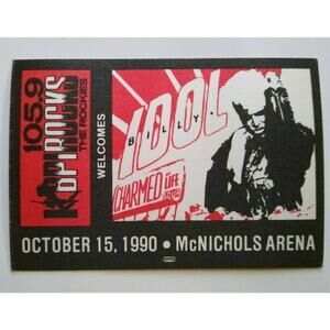 Billy Idol Charmed Life Backstage Pass Original 1990 Rock Concert New Wave Punk