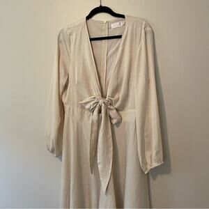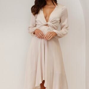 Billy J Starry Nights High Low Midi Dress Tie Front Back Champagne Cream US 12