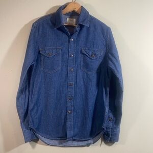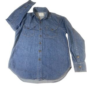 Stylish blue button down shirt. Features chest pockets. Perfect for casual wear.