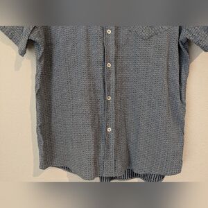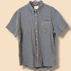 Billy Reid Blue Patterned Woven Cotton Short Sleeve Button-Up Tuscumbia Shirt LG