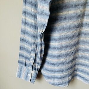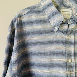 Billy Reid Blue Striped Linen Blend Long Sleeve Button Up Shirt