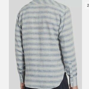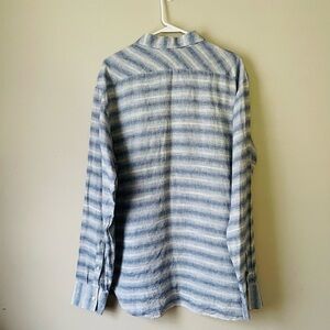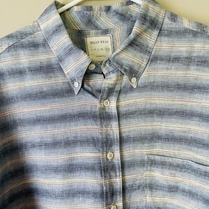 Billy Reid Blue Striped Linen Blend Long Sleeve Button Up Shirt