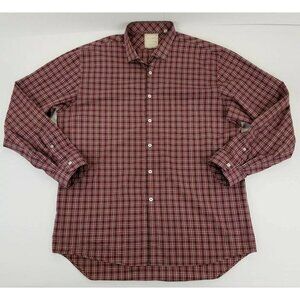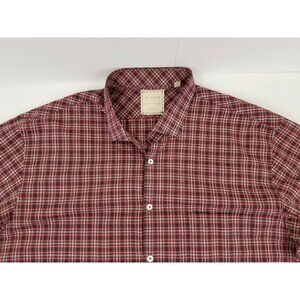 Billy Reid Standard Cut Long Sleeve Men's Button Shirt Size 2XL Red Plaid B28.