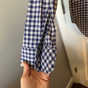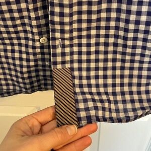 Handsomely tailored button down shirt by Billy Reid. Materials tag is faded so size is based on measurements, size chart included in pix. No noted flaws.