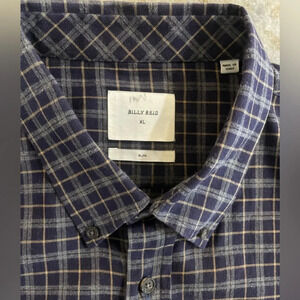 Billy Reid Cotton Plaid Shirt Button Down Slim Fit Size XL Made in Italy