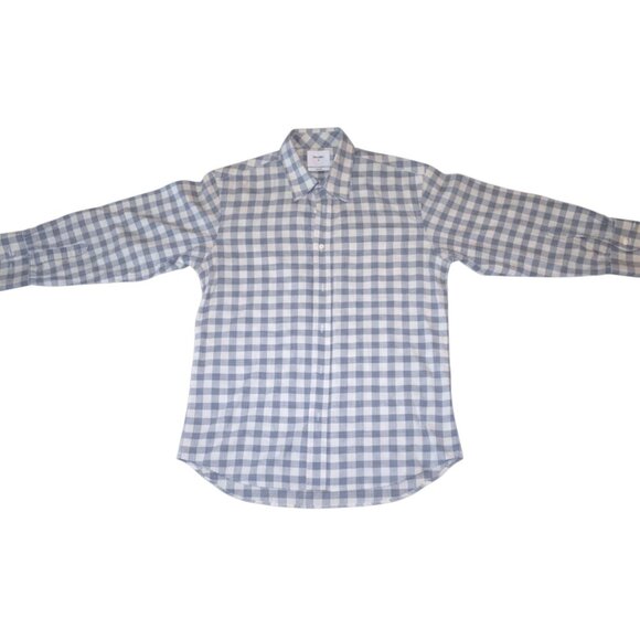 Billy Reid Gingham Button Shirt S Blue White Standard Fit Minimalist Casual