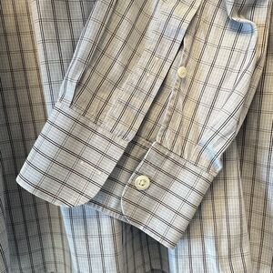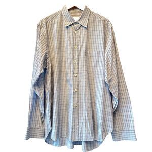 Billy Reid Gray Blue Plaid Roll Tab Sleeve Button Up Cotton Shirt Mens XL