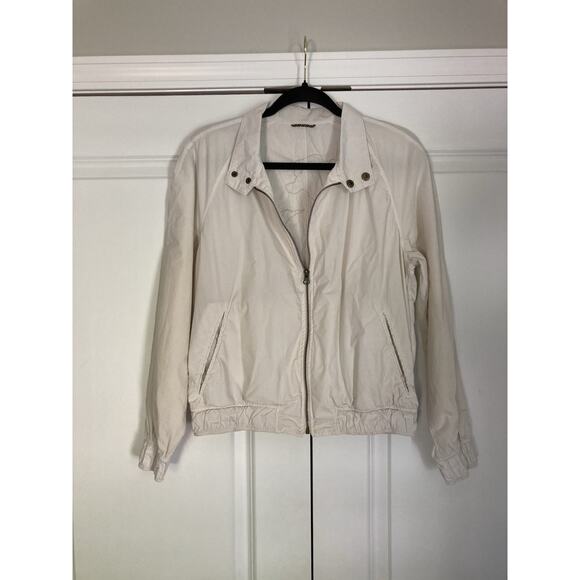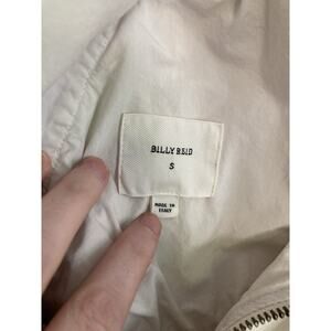 Elevate your style with this luxurious Billy Reid windbreaker jacket, crafted in Italy with superior quality. The ivory cotton canvas jacket features elegant crane embroidery and a stylish mid-length cut, making it a perfect addition to your wardrobe. It has a relaxed fit and long sleeves with an elastic waist, providing both comfort and functionality.