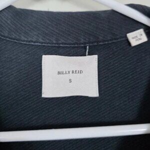 Keywords: Billy Reid, Mens jacket, Cotton jacket, Casual jacket, Button up jacket, Black jacket, Size S, Small jacket, Menswear, Twill jacket, Everyday wear, Comfortable jacket, Stylish jacket, Front Pockets, Elbow Patches