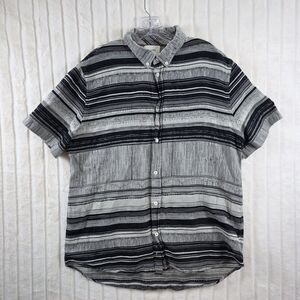 Billy Reid Men's Gray Black Geometric Short Sleeve 100% Cotton Size XL