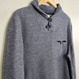 Billy Reid Shawl Collar Pullover Sweater Size XXL Gray Blue soft warm