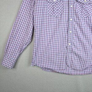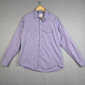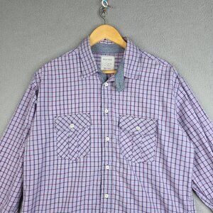 Billy Reid Shirt Men Size Large Purple Windowpane Plaid Long Sleeve Cotton Fit 2