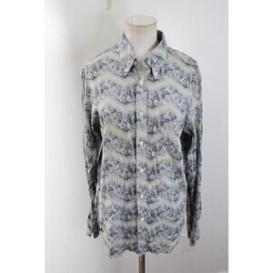 Billy Reid Shirt Mens Medium Standard Cut Long Sleeve Geo Floral Button Italy. In very good shape, no holes or tears. Cotton, viscose blend.