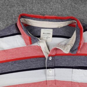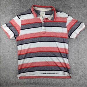 Billy Reid Shirt Mens XL Red White Gray Striped Polo Short Sleeve Front Pocket
